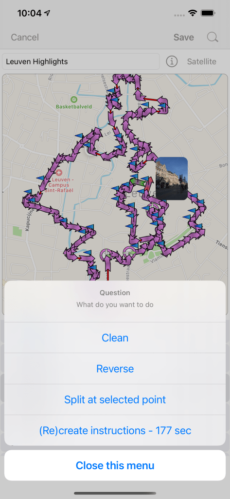 When you are done splitting, you can either cancel – this will keep the selected walk untouched but the final subsection of the walk will not be created – or save the the modified walk. If you save, you’ll have the original walk completely divided in multiple segments. But the original walk will be lost.